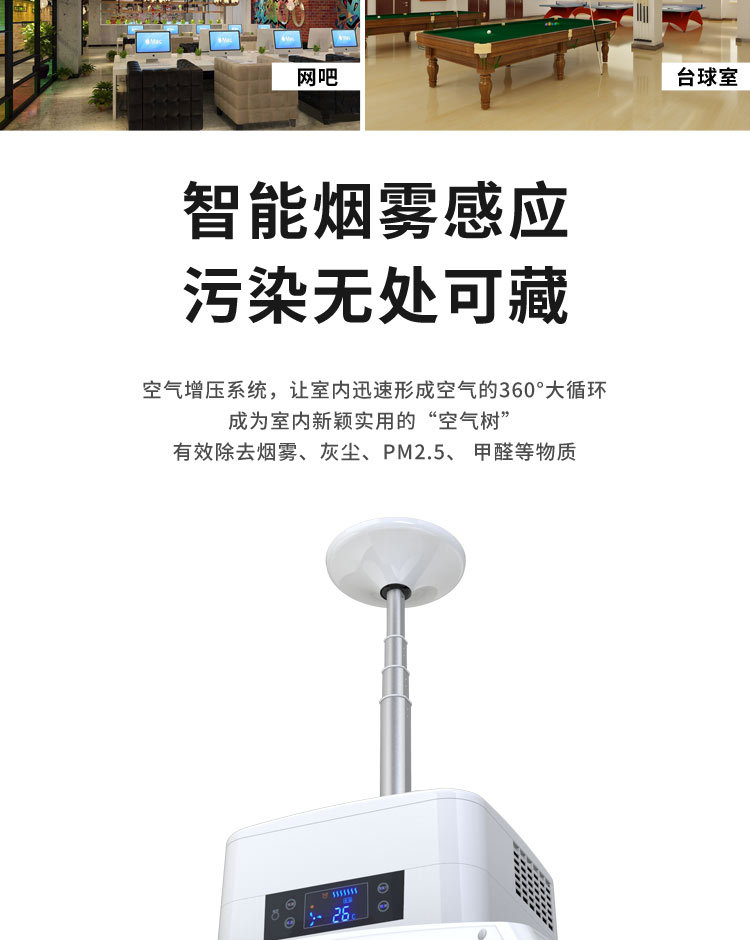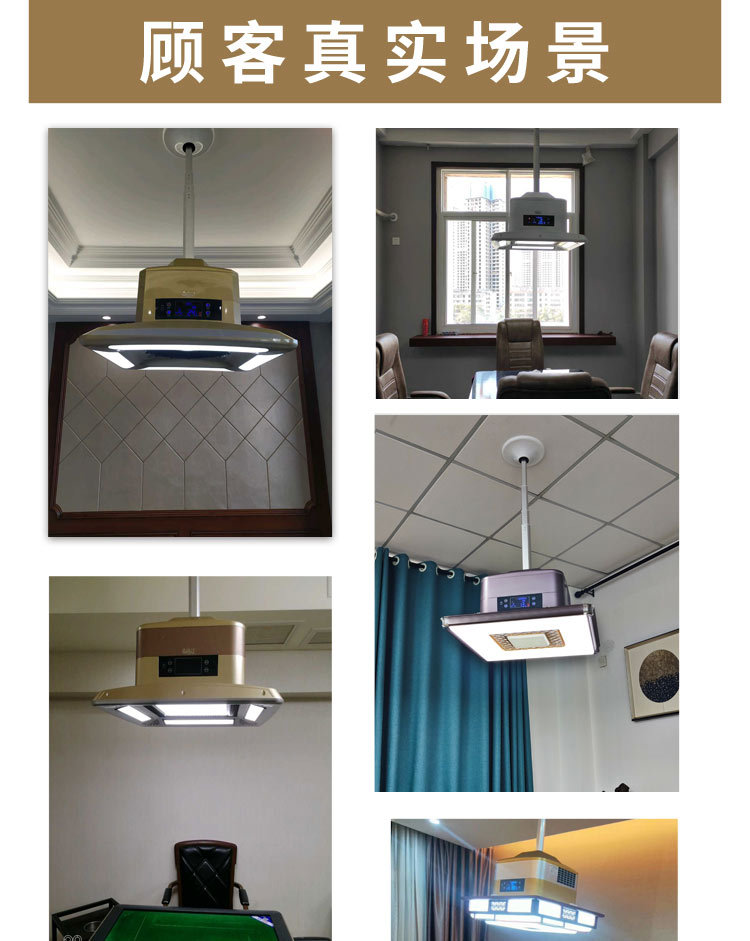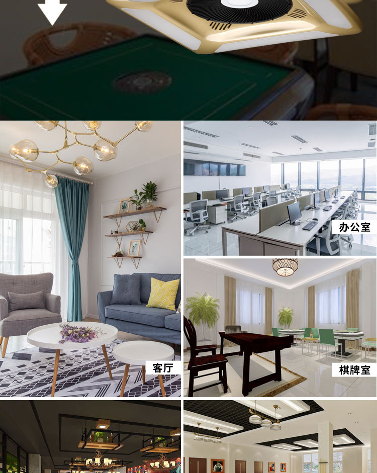 麻將館、棋牌室適用,能有效地消除室內(nèi)空氣中的煙塵、煙霧(有效地預(yù)防“二手煙”對人身體的危害)及室內(nèi)裝修產(chǎn)生的有害氣體。集空氣凈化、照明、裝飾于一體。