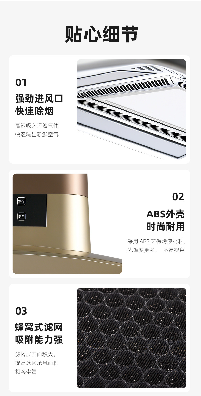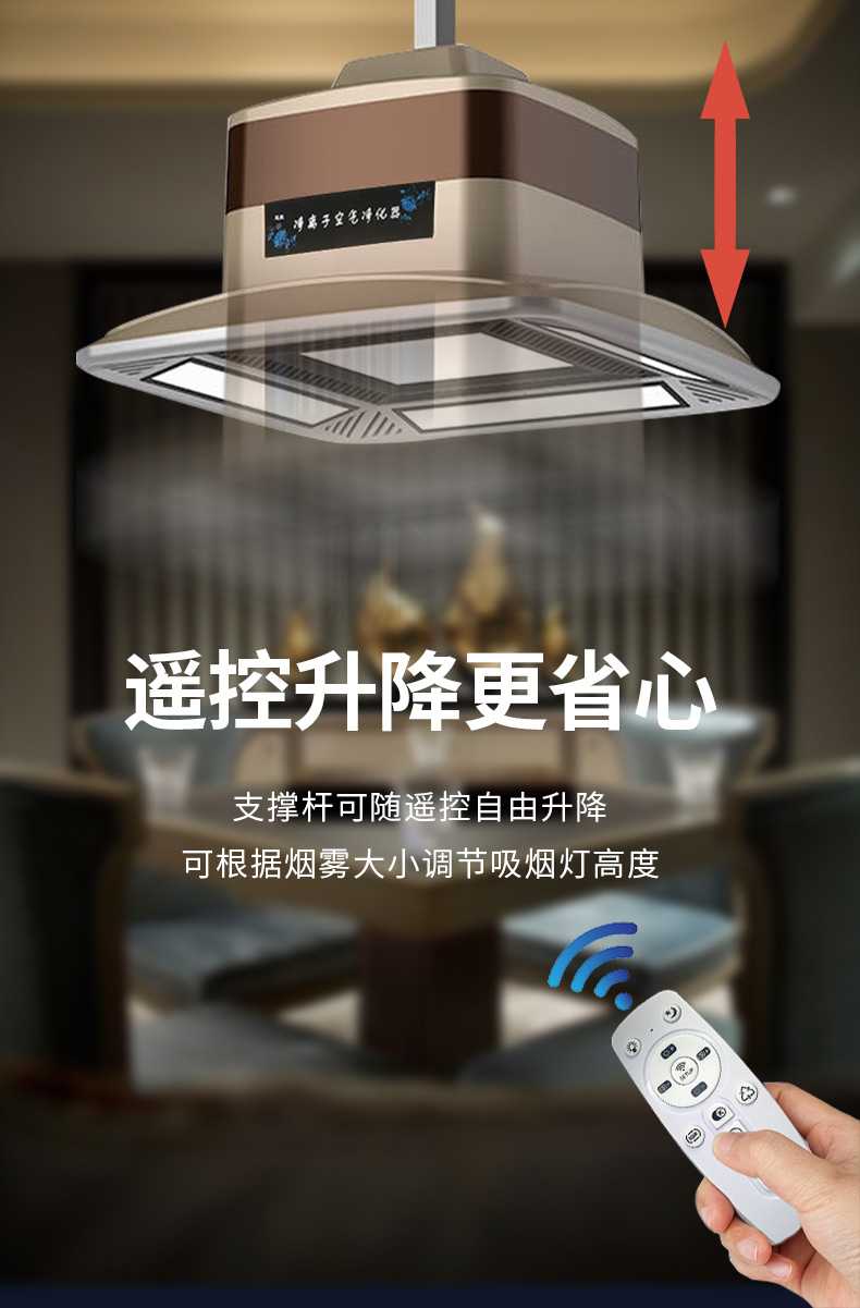 3.遙控升降,低噪強勁快速除煙