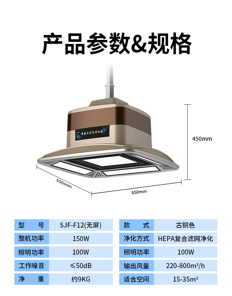 酒店、棋牌室、包間、KTV、會所、候車廳等除煙除塵凈化燈,集吸煙、照明、裝飾三位一體