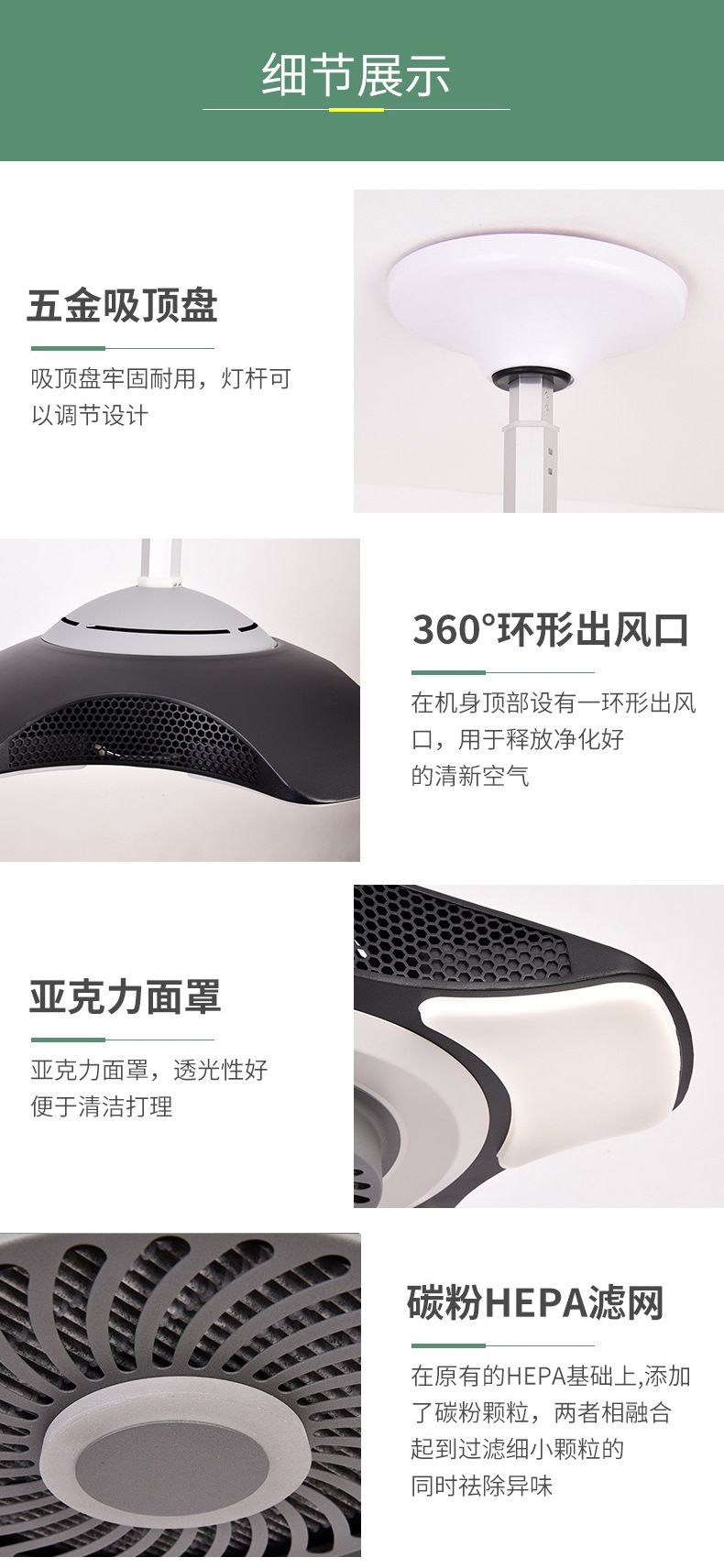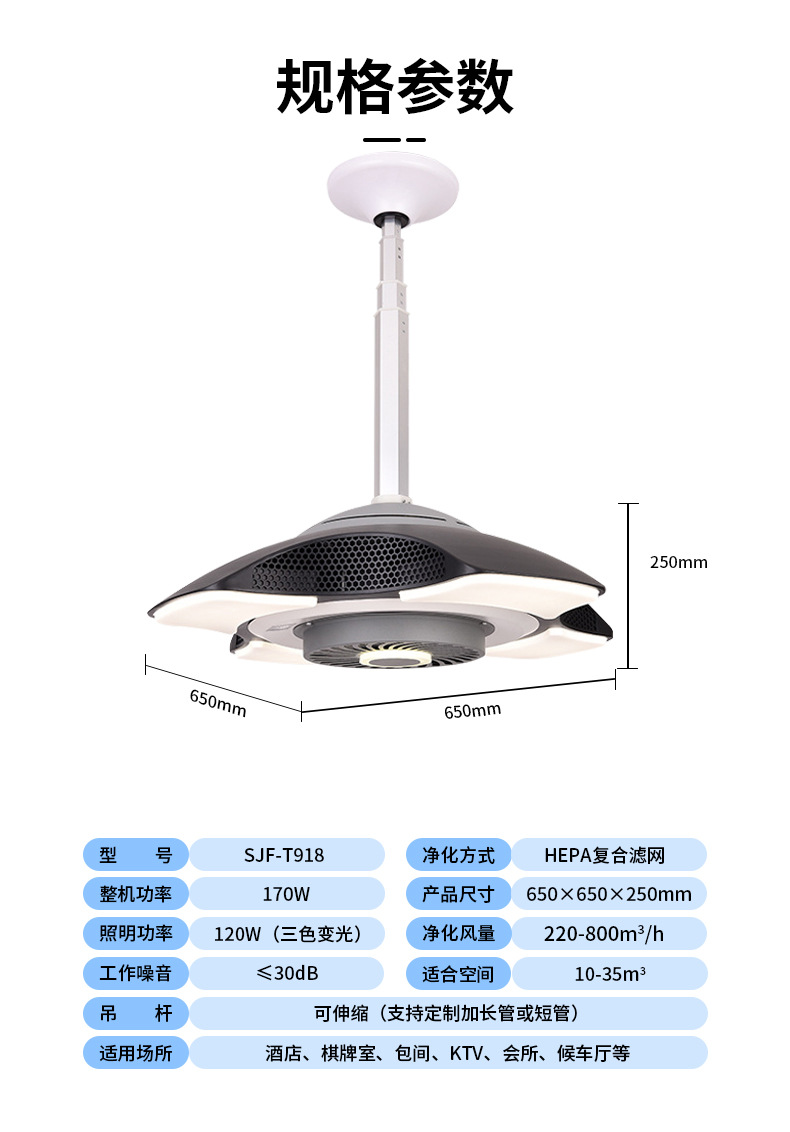 棋牌室、會客廳、包間、KTV、會所、候車廳等除煙除塵凈化燈,集吸煙、照明、裝飾三位一體